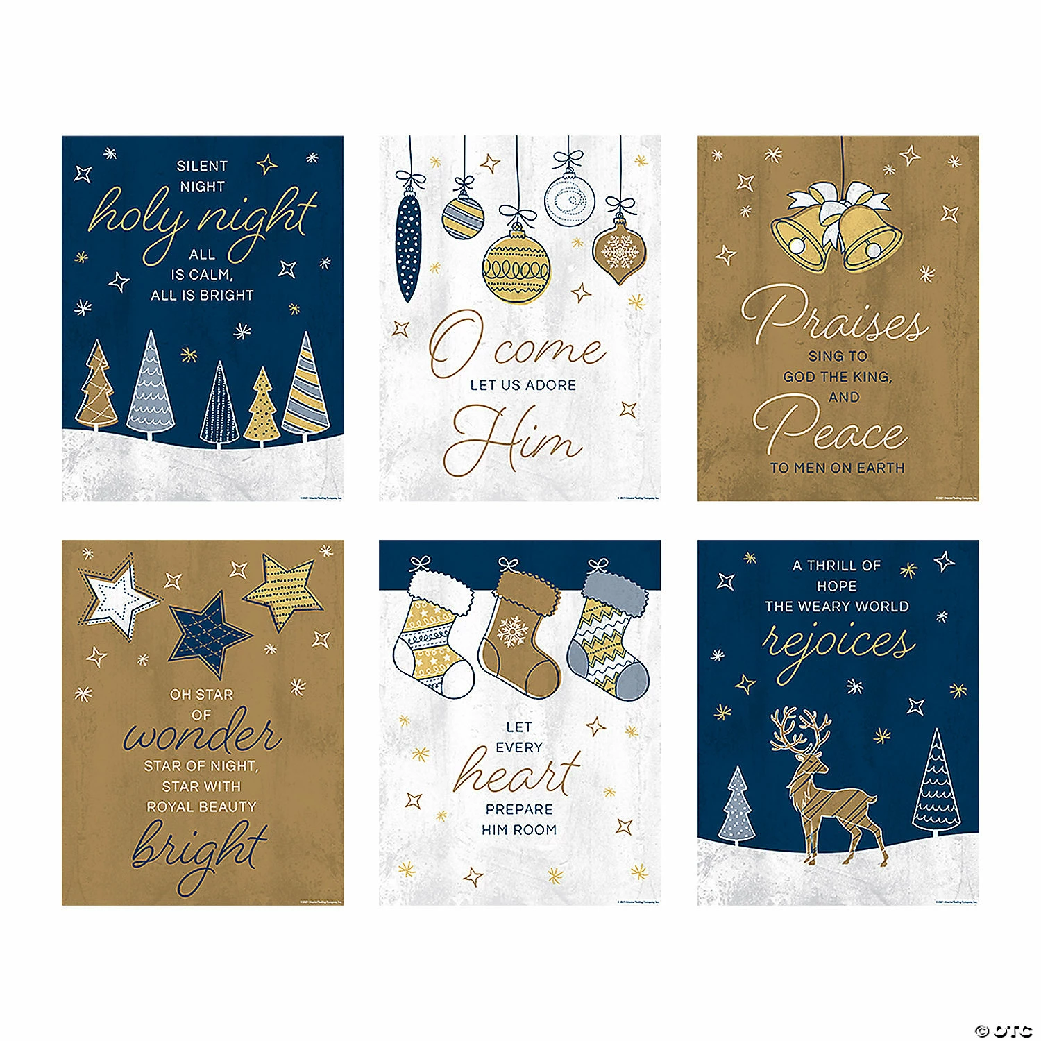 Add these lovely Christmas posters as wall decorations in Bible study rooms or adult Sunday School learning spaces. These posters each feature a popular Christmas song lyric and a sophisticated Christmas image, making them a great choice as elegant Christmas party wall decorations or seasonal additions to church wall decorations. Cardstock. (6 pcs. per set) 17″ x 22″ ยฉ OTC