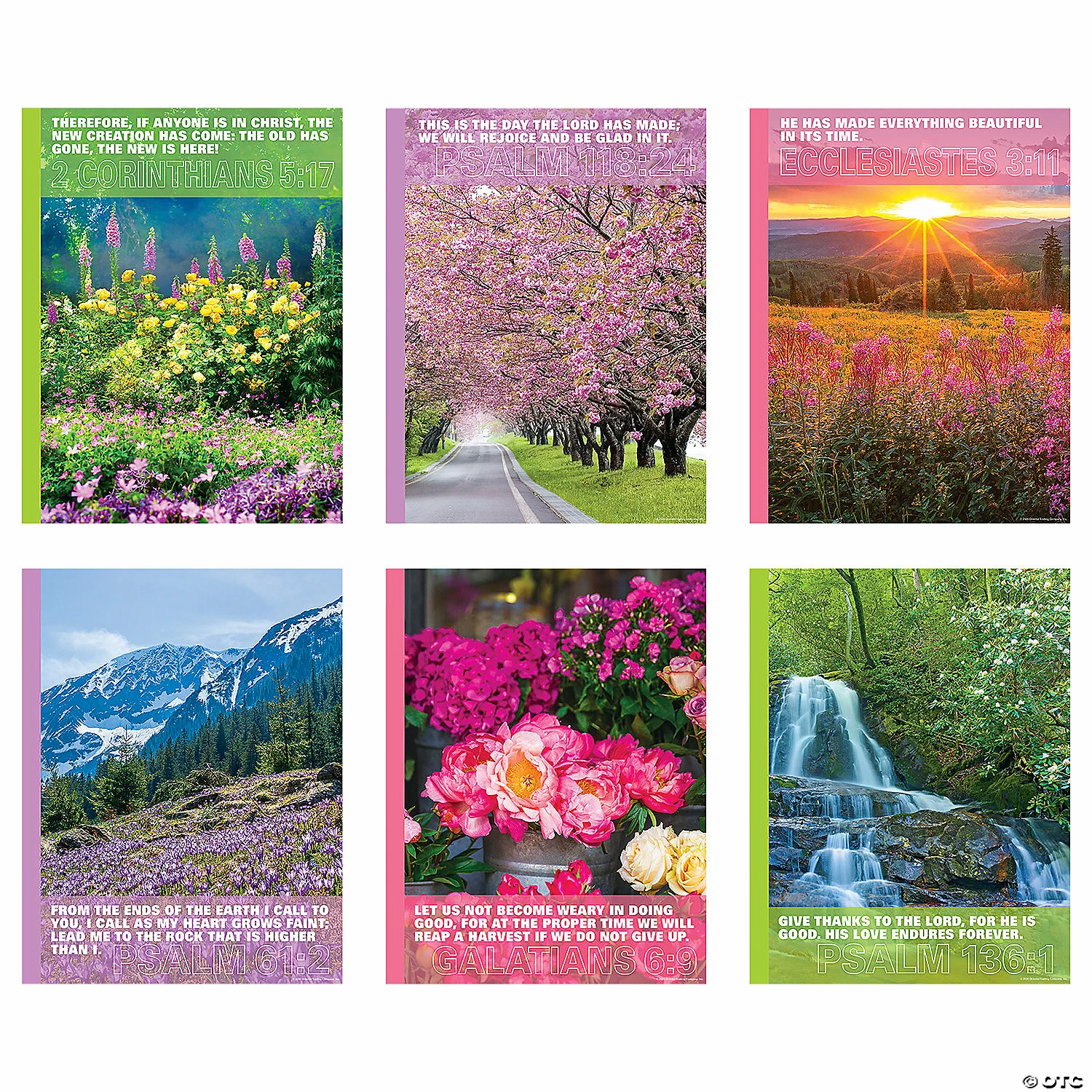 Celebrate the beautiful colors of spring and the One who created them with these lovely posters. Each poster features a breathtaking spring image along with Scripture. A must-have for spring Sunday School classroom wall decorations, these posters are lovely enough to display year-round to remind everyone of Godโs amazing creation. Cardstock. (6 pcs. per unit) 17″ x 22″ ยฉ OTC