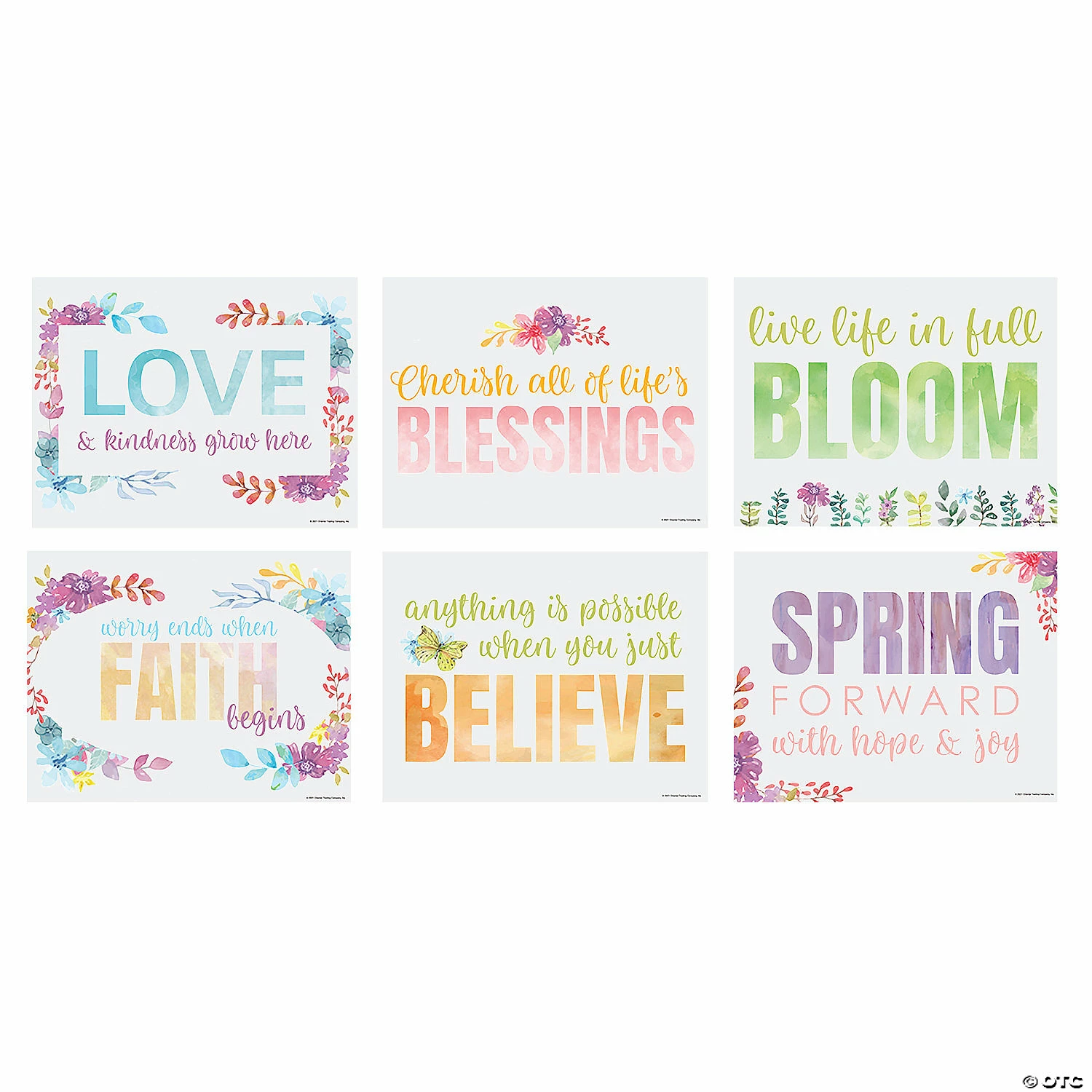 Celebrate spring with these lovely posters featuring a watercolor look and positive faith messaging. A good choice for a ladiesโ Bible study space or for a youth group meeting room, these faith-filled wall decorations will help bring the colors of spring indoors. Display all the posters together or scatter them throughout the roomโs walls. Cardstock. (6 pcs. per unit) 22″ x 17″ ยฉย OTC
